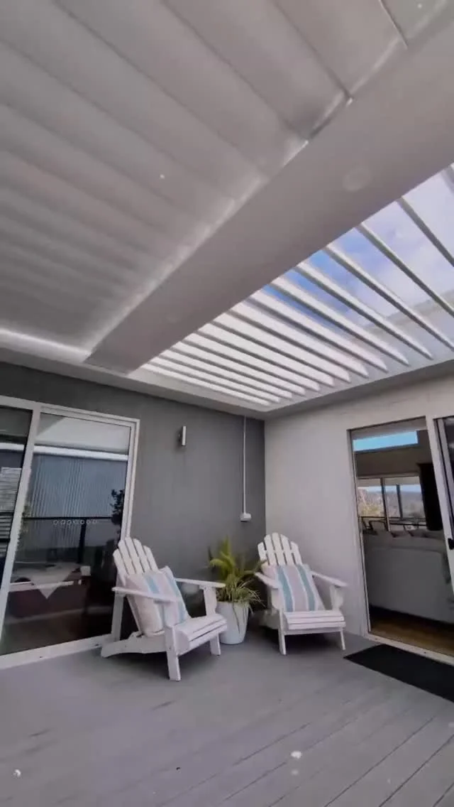 The Vergola opening and closing louvre roof system can be built to suit a variety of designs.